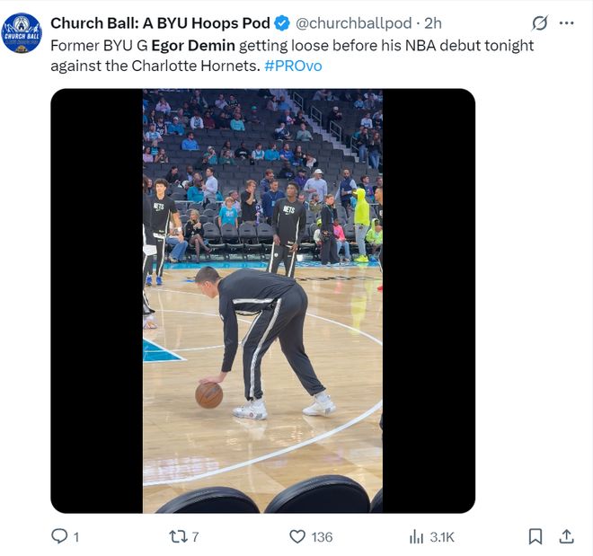 杨百翰大学:能看到杨百翰大学又有球员在NBA打球我感到非常兴奋,杰明在篮网的首秀发挥非常出色。